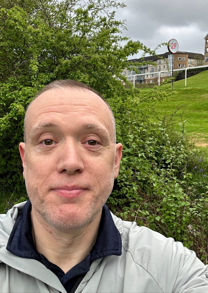Smart: “The image below is me playing golf which I’ve taken up in the last year. Look closer and behind me you’ll see the 2furlong pole at Hamilton Park Racecourse – it blows my mind when I’m out there that I used to put my last penny in a betting shop betting on horses running past that pole.